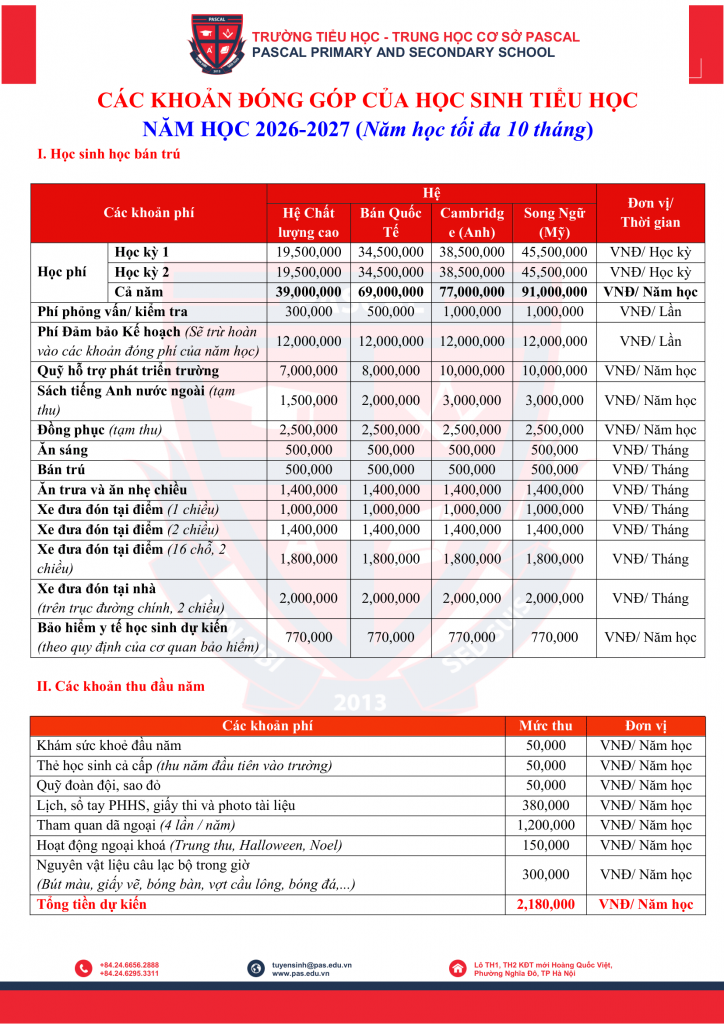 I. CÁC KHOẢN ĐÓNG GÓP CỦA HỌC SINH TIỂU HỌC