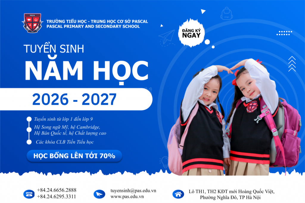Trường TH – THCS Pascal thông báo tuyển sinh năm học 2026 – 2027, thông tin chi tiết như sau: